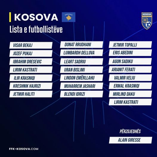Pasi që u publikua lista e parë e lojtarëve të grumbulluar, trajneri i Kosovës, Alain Giresse e ka ndryshuar atë me një listë të re