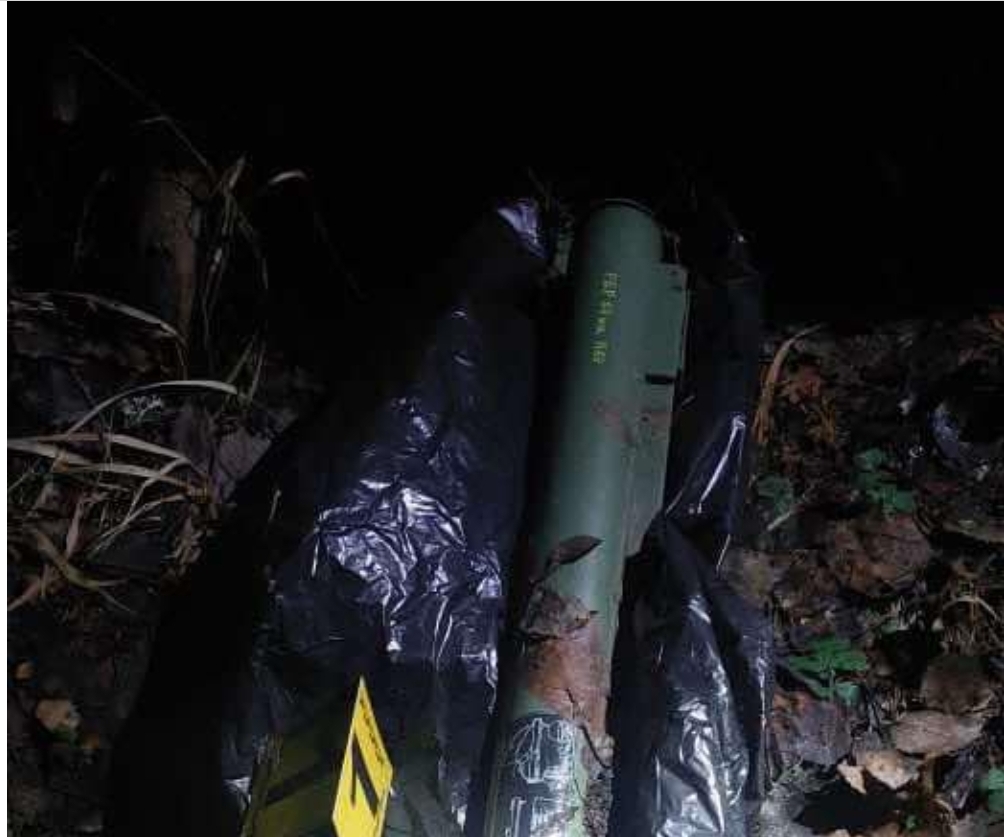 “Sot me dstën 03.02.2025 rreth orës 16.00 derisa policët ishin në patrullim në zonën kufitare në lidhje me informacione për rrugë alternative për kontraband të mallrave, kanë hasur në një qese najloni ngjyrë e zezë në të cilën mund të kishte diçka të dyshimtë. Pasi ka arrit në vend ngjarje edhe forenzika rajonale kemi vërejt se kemi të bëjmë me një raketahedhës M80 e kalibrit 64mm”, njoftoi Elshani.