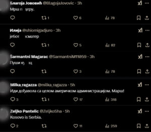 Në mesazhet e tyre, disa prej tyre kanë shkruar: “Shkoni në ferr me gjithë administratën amerikane”, “Largohu, pe*er”, “Kosova është Serbi”…