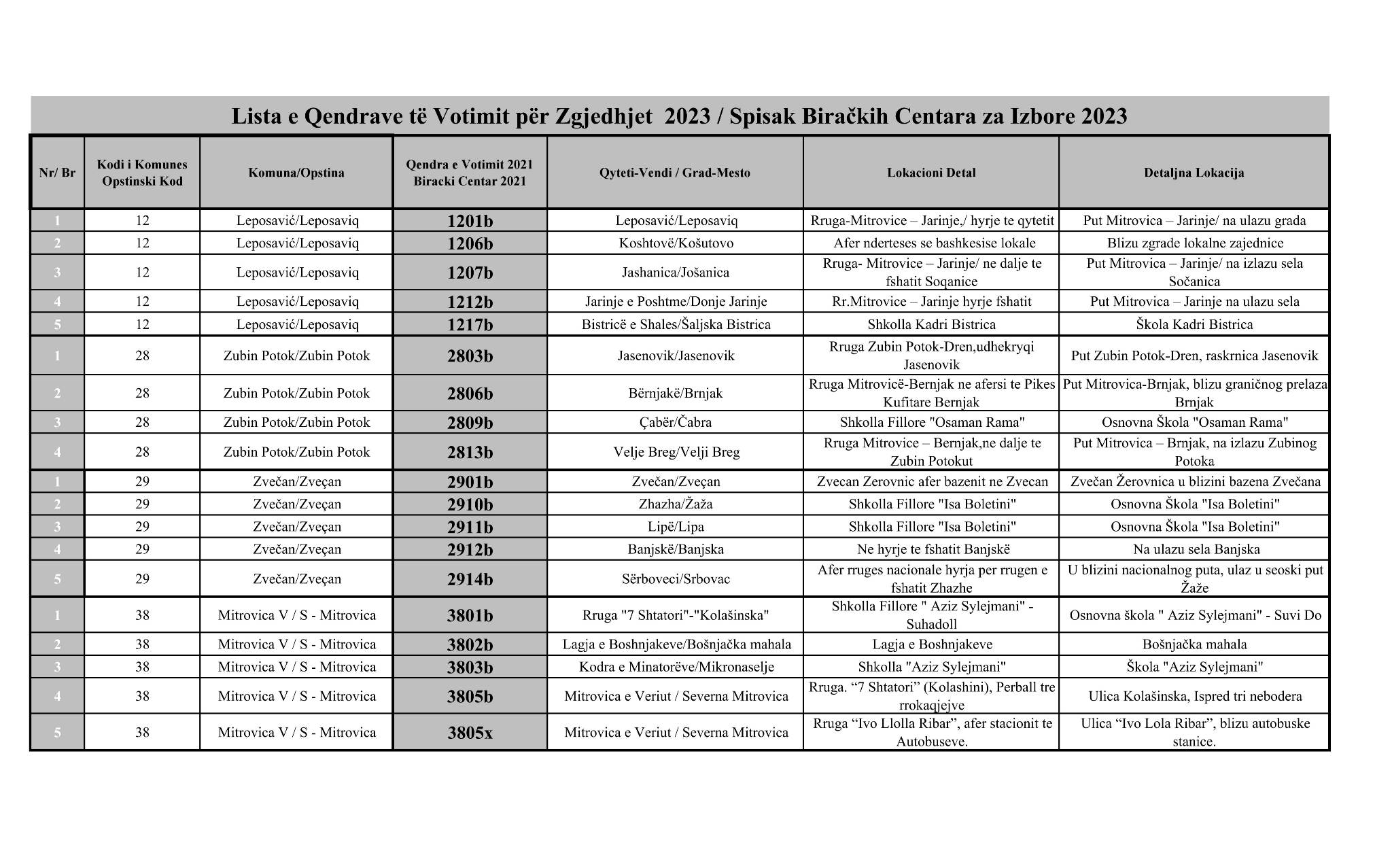 Lidhur me këtë, Komisioni Qendror i Zgjedhjeve ka miratuar listën e qendrave të votimit. Sipas zëdhënësit të këtij institucioni, Valmir Elezi, nga 44 qendra të votimit, tash janë vetëm 19 sosh, gjë që ka ndikuar në rritjen e votuesve për qendër- nga 750 në 2 mijë.