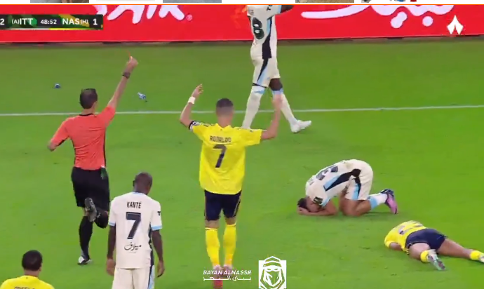 Futbollisti i Al Ittihad, Ahmed Al Julaydan, është përjashtuar me karton të kuq, pas një goditje të rëndë direkt në kokën e lojtarit kundërshtar, Ayman.