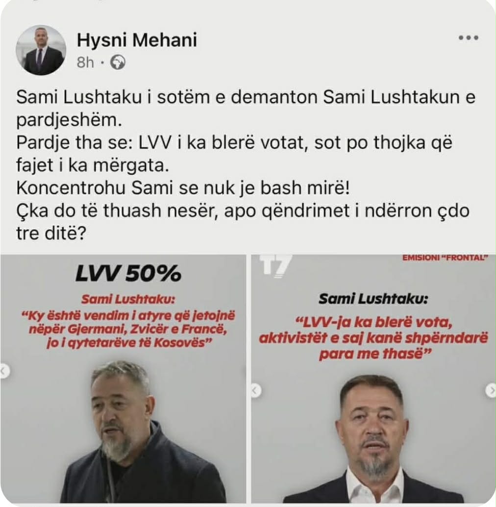 Sipas Mehanit, Lushtaku i sotëm e demanton vetveten nga deklaratat e mëparshme. “Pardje tha se LVV i ka blerë votat, sot po thotë që fajet i ka mërgata.