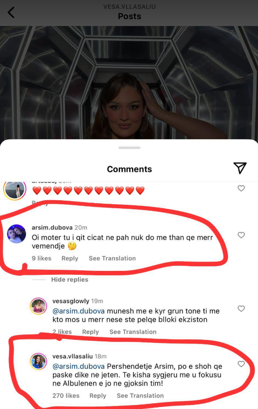 “Oi moter tu i qit c*** ne pah nuk do me than qe merr vëmendje”, ishte komenti të cilit Vesa iu përgjigj fuqishëm.