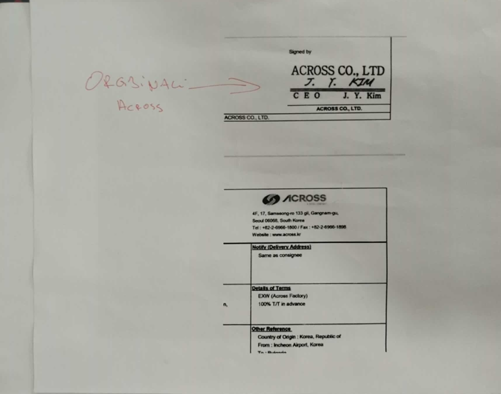 Dyshimi i ngritur në këtë rast ndërlidhet me vërtetësinë e faturave të lëshuara në emër të prodhuesit korean “Across Co., Ltd.”.