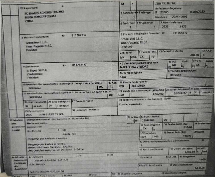 Një denoncim anonim ka vënë në lëvizje Sektorin e Inteligjencës së Doganës së Kosovës, i cili ka nisur procedura hetimore ndaj kompanisë “Green Med L.L.C.” për parregullsi të mundshme në dokumentacionin e importit të produkteve estetike. Rasti ka marrë vëmendje edhe për shkak të lidhjes familjare mes pronarit të biznesit dhe një inspektoreje shëndetësore, e cila ushtron detyrë në të njëjtin sektor. Dokumentet e siguruara ngrenë dyshime për mospërputhje në faturim, origjinë të produkteve dhe licencim, ndërsa institucionet përgjegjëse ende nuk kanë dhënë përgjigje lidhur me pretendimet për konflikt interesi dhe deklarimin e pasurisë, raporton Veriu.info.