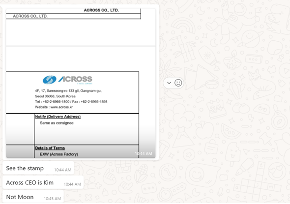 Denoncimi i dërguar në Doganën e Kosovës zbulon se kompania koreane ka ofruar prova se CEO i saj zyrtar është në fakt Kim Jae Yoon (i shënuar si J. Y. Kim) dhe ka mohuar që emri “Moon” të ketë autorizim për nënshkrime.