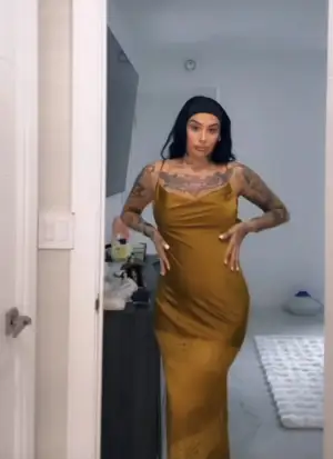 Edhe pse po mundohet ta fshehë, barku i rrumbullakosur bie në sy dhe merr vëmendje në çdo postim të saj.