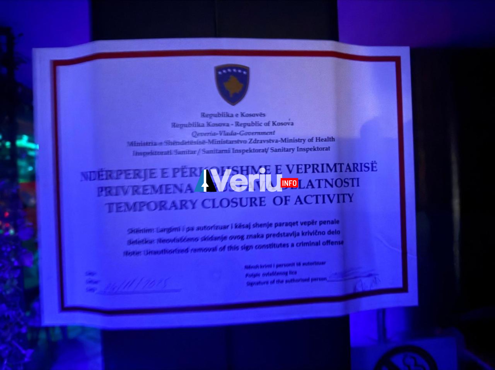 Lokalet “Sindikat” dhe “Parliament” në pronësi “të të fortëve të Veri” janë mbyllur për shkak të kushteve higjieno sanitare dhe mungesës së dokumentacionit.
