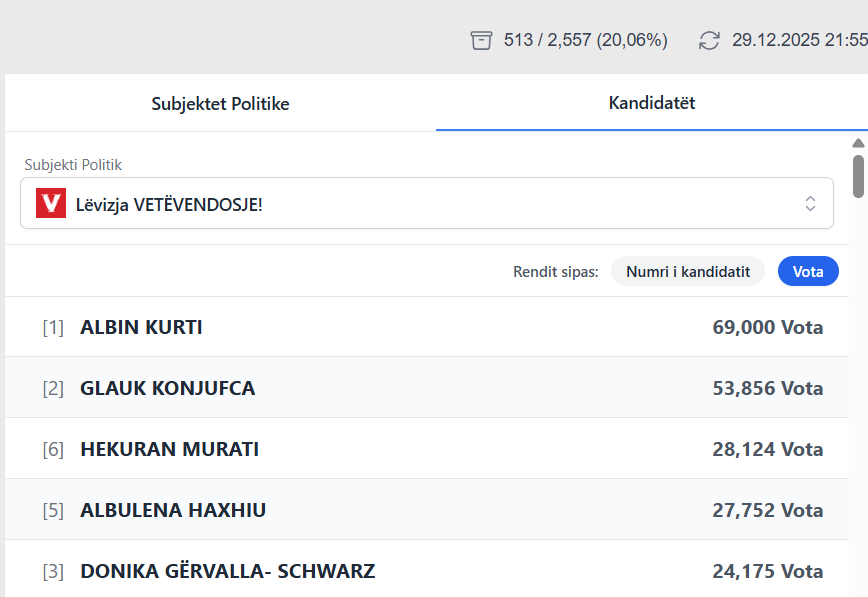 Pas tyre renditen Hekuran Murati me 28,124 vota, Albulena Haxhiu me 27,752 dhe Donika Gërvalla-Schwarz me 24,175 vota.