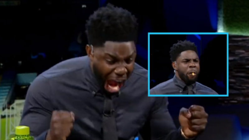 Goli i hershëm i zuri papritur shumë tifozë të ‘Citizens’ e një prej tyre ishte edhe ish mbrojtësi i tyre, Micah Richards i cili ishte duke ngrënë makarona në studion televizive të CBS Sports por në momentin kur u realizua goli i epërsisë harroi gjithçka për të festuar në mënyrë të ‘çmendur’.