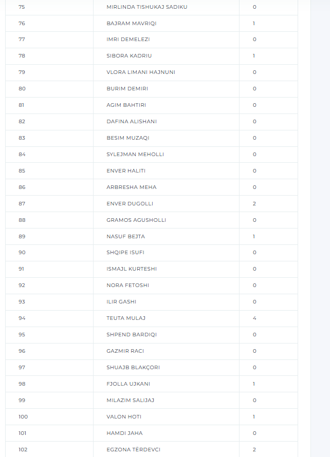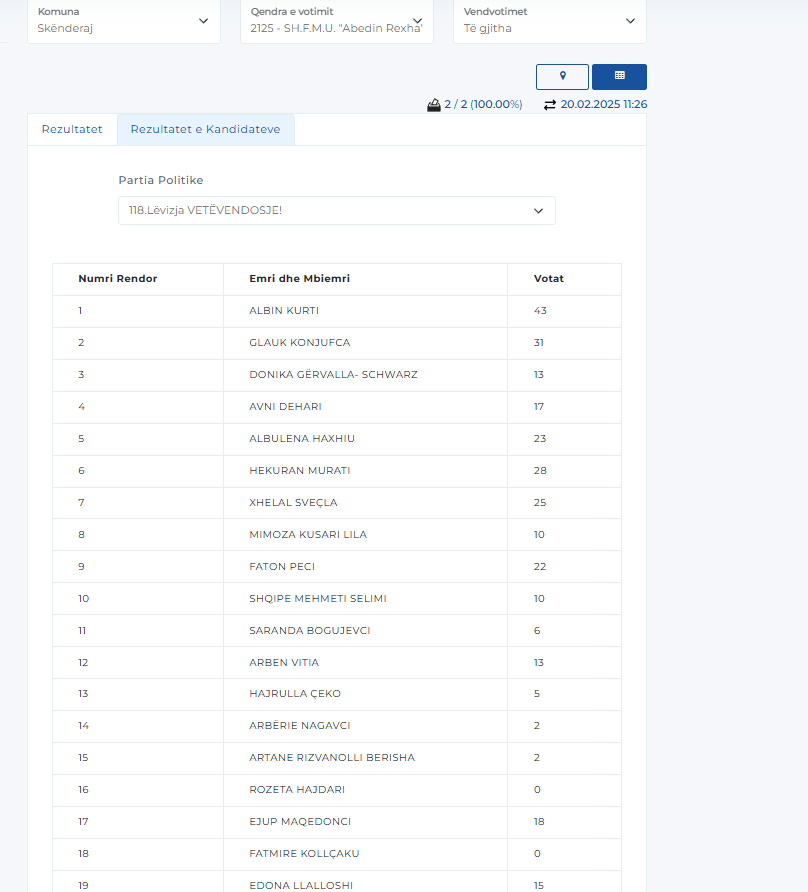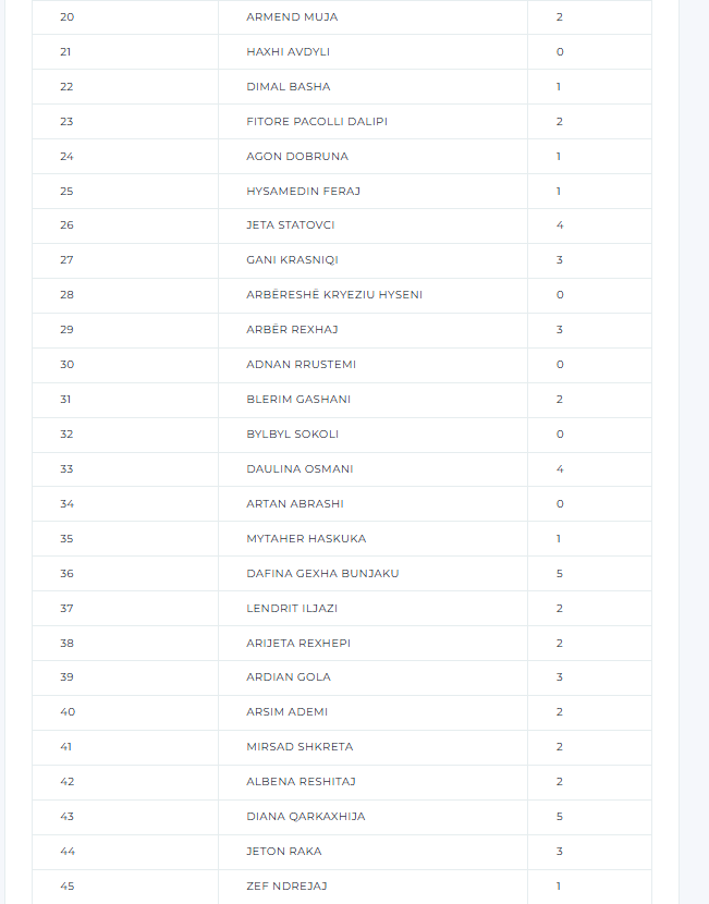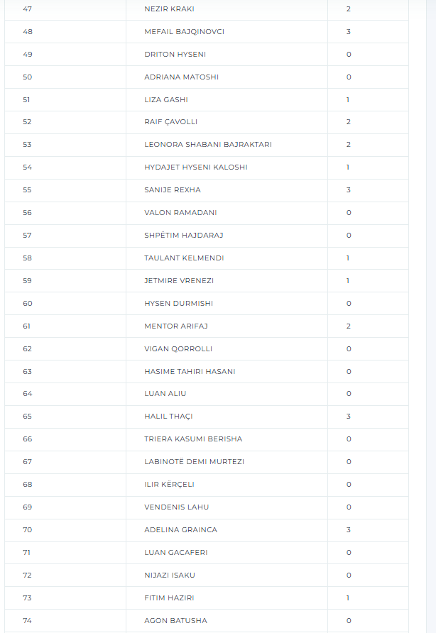 Nga këto dy vendvotime të numëruara, janë 46 kandidatë për deputetë rezultojnë me zero vota.