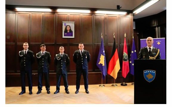 Në Ambasadën e Republikës së Kosovës në Berlin, u mbajt ceremonia e përfundimit të akademisë ushtarake tre vjeçare në Republikën Federale të Gjermanisë të katër kadetëve të Forcës së Sigurisë së Kosovës.
