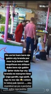 “Me vërtet kam bërë një gabim aty brenda, por mos u habisni nëqoftëse më shikoni duke bërë një gabim tjetër duke hyrë aty brenda në mënyrën time (nga gardhi, nga qielli, nga të më vijë) vetëm të takoj pak njërën…s’ka mundësi që po e përjetoje dhe nga jashtë’, shkruan Kejvina. Kejvina reagoi edhe kur Luizi veshi bluzën që ajo i kishte dhuruar dhe Kiara i tha ta hiqte. “Aman ma zhduk këtë bluzën, ma hiq”, i tha Kiara Luizit. “Ma ka dhënë Kejvina”, ia ktheu Luizi.“Eh moj Kiara butulose po kur merrje gjerat e mia aty brenda te pelqenin?”, shkruante modelja.