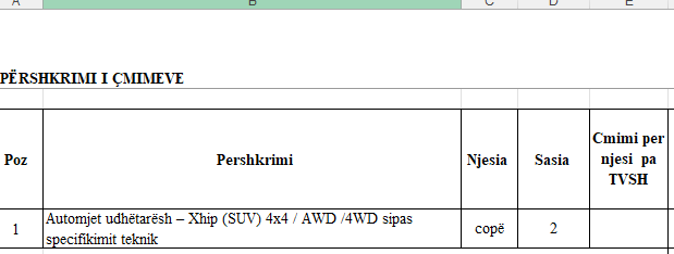 “Furnizim me automjete udhëtaresh – xhip 4X4”, thuhet në kontratë.