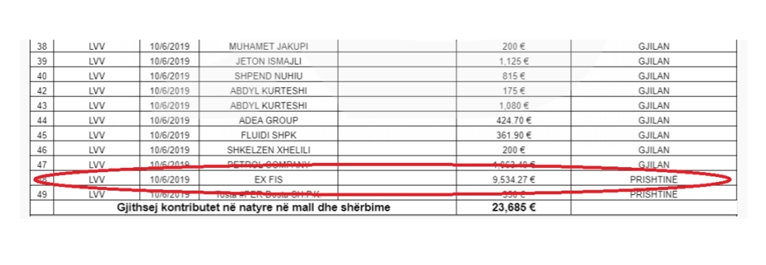 “EX FIS”, figuronte me vlerën më të madhe të mallrave si donacion, duke ia dhuruar tashmë partisë në pushtet plot 9,534 euro përgjatë zgjedhjeve të vitit 2020.