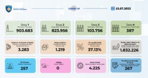 Aktualisht në Kosovë janë 4225 raste aktive me COVID-19, ndërsa 267 persona janë vaksinuar në 24 orët e fundit.