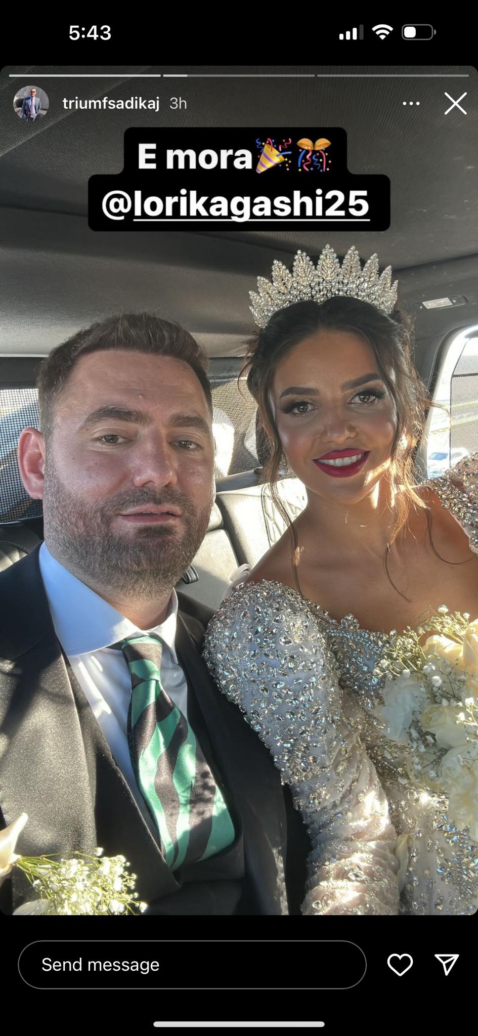 Sadikaj ka postuar një foto në Facebook-un e tij së bashku me nusen, në të cilën ka shkruar “ E mora”.