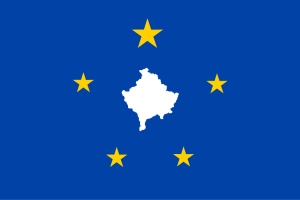 Një sipërfaqe e kaltër me një hartë të bardhë të Kosovës e rrethuar me 5 yje. Yjet ndryshojnë në madhësi dhe përfaqësojnë grupet e ndryshme etnike që banojnë në Kosovë. Ylli më i madh do të përfaqësonte shqiptarët etnikë.