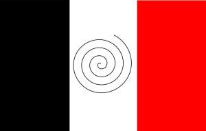 Një trengjyrëshe vertikale e zezë, e bardhë dhe e kuqe me një simbol spirale në qendër të shiritit të bardhë, i cili është një simbol dardan për diellin rrotullues.