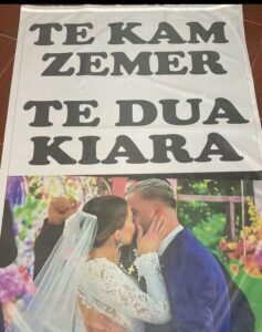 Për t’i treguar që çdo gjë është në rregull moderatorja i dërgoi sot një dron këngëtarit. Në të shkruhej “të kam zemër, të dua”, teksa në sfond ishte fotoja e puthjes së tyre të parë, ajo gjatë dasmës.