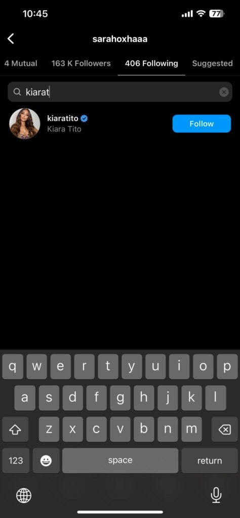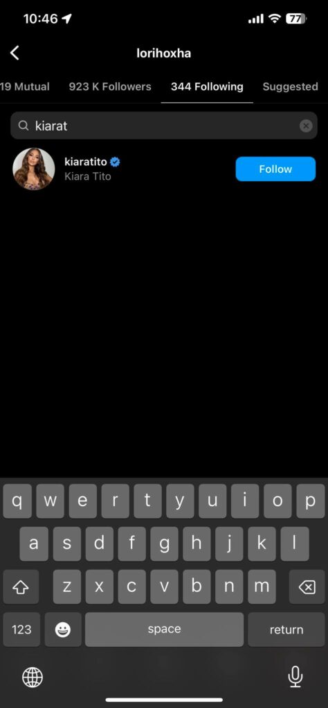 Me një hulumtim në llogarinë e saj në Instagram vërejmë se Kiara ka hequr nga lista e ndjekësve Sara e Lori Hoxhën si dhe Arbana Osmanin.