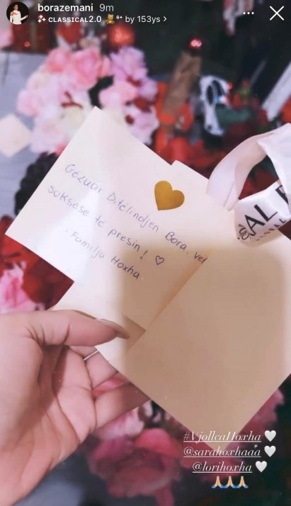 Kjo buqetë me lula ka ardhur nga familja Hoxha, ku ato i kanë uruar shumë suksese.