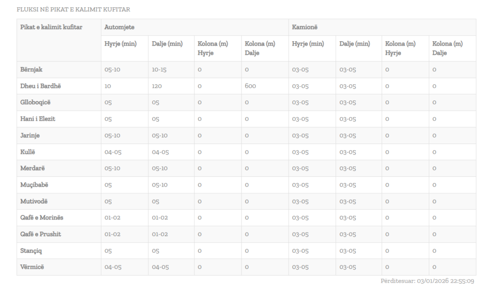 Kështu njoftohet në përditësimin e fundit për situatën në këto pika.