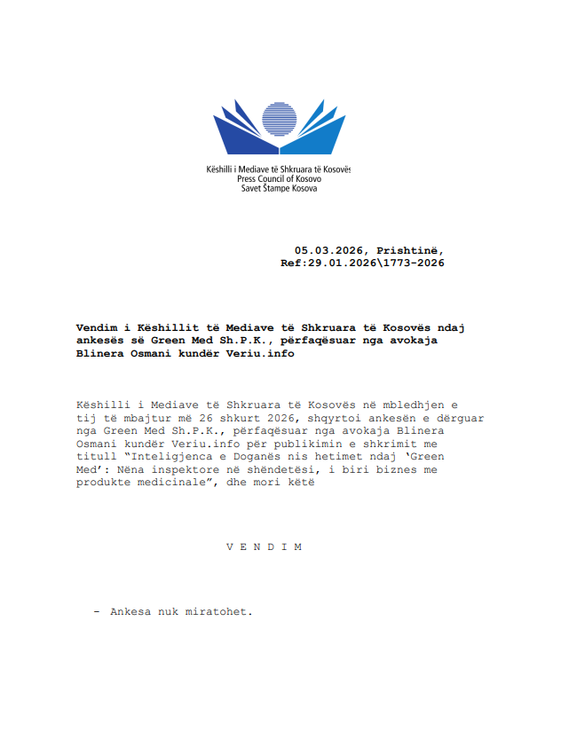 “Green Med” përmes avokates Blinera Osmani kishte kërkuar nga KMShK të konstatoj se portali Veriu.info ka bërë shkelje të Kodit të Mediave të Shkruara dhe të obligojë portalin të largoj lajmin.