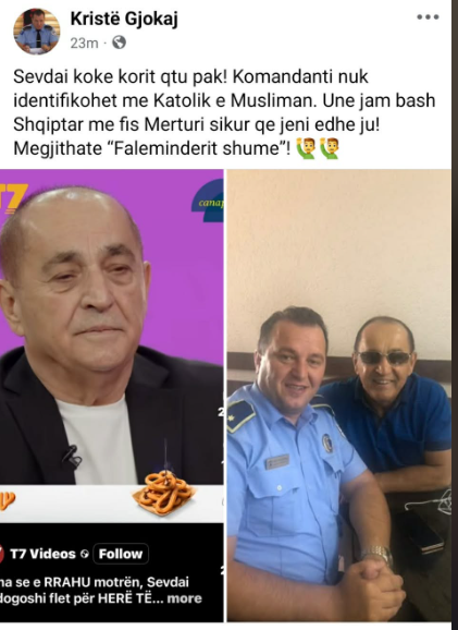 “Sevdai koke korit qtu pak! Komandanti nuk identifikohet me Katolik e Musliman. Une jam bash Shqiptar me fis Merturi sikur qe jeni edhe ju! Megjithate “Faleminderit shume”!”, shkroi ai, duke publikuar një fotografi me humoristin.