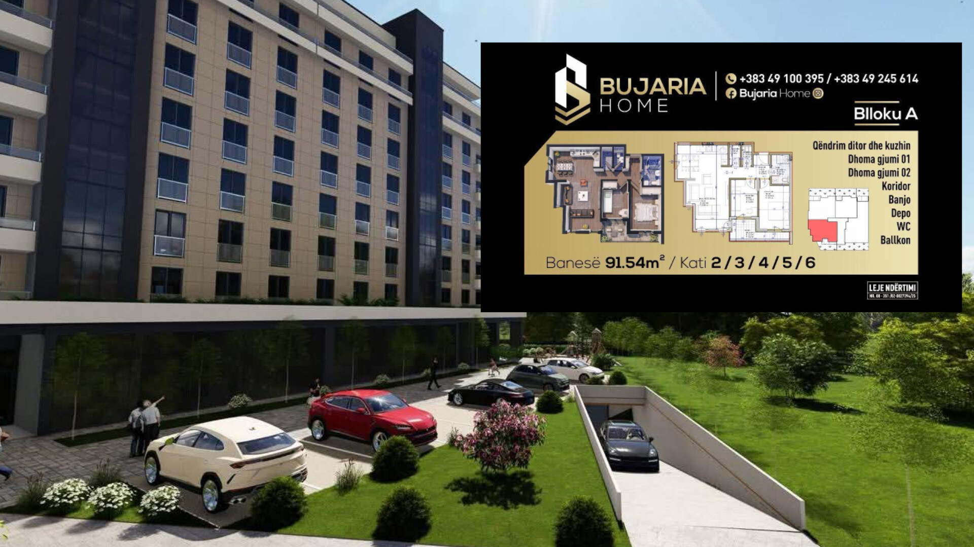 Për të rezevuar banesën në madhësi që ju përshtatet, kontaktoni në: +383 49 100 395 & +383 49 245 614