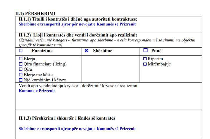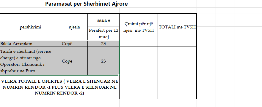 Sipas dokumentit të publikuar në e-prokurim, tenderi përfshin blerjen e 23 biletave të aeroplanit për një periudhë 12-mujore.
