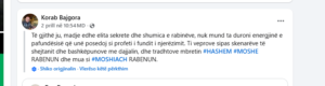 “Mbreti i madh #HASHEM është ARGUMENTI im. Me një argument të bazuar në parajsë kur jeta ime fizike është në rrezik #TORAH është TESTAMENTI im. Prej qe MOSHE RABENU me shkrujti si profeti i fundit i njerzimit, komandantat e kosoves ne krye me Ramush Hardinaj, qe eshte dajallar kane perdor institucionet shtetrore per me vra jashte ne liri dhe brenda burgut, por ne vitin 2019, kur me erdhi profecia, i thash MUHAMET HALITITIT, psikologu i cili tash i tha XHAVIT HALITIT se KADRI VESLIT tregoi se komuniteti hebre në KOSOVË i ka gjetur gjurmët e mia, më ka lëshuar por hebrenjtë u munduan të manipulojnë në mënyrë psiqike që ta marrin pasardhësin tim dhe ta sjellin në IZRAEL për ta mashtruar popullin hebre se MESIA ka lindur në IZRAEL. me respekt rabini i madh #MOSHIACH RABENU #INFINITY nga KOSOVA”, ka shkruan ai.