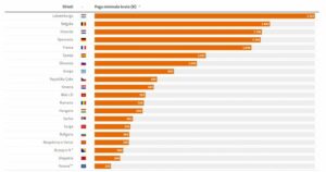 Në kontinentin evropian, Kosova e ka pagën më të vogël minimale, ndërsa Luksemburgu i prin listës si shteti me pagën më të madhe minimale. Paga minimale e një shteti përcaktohet me ligj dhe zbatohet për shumicën e punonjësve të atij shteti.