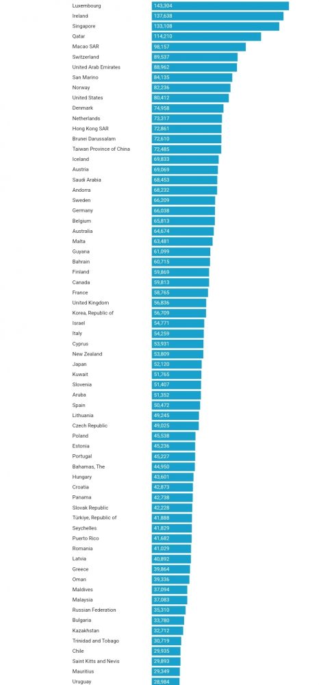 PBB për frymë, çmime korente (sipas barazisë së fuqisë blerëse; dollarë ndërkombëtarë për frymë), viti 2023