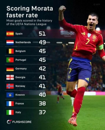 Gjatë ditës së sotme faqja e specializuar e statistikave në futboll, Flashscore ka publikuar një listë ku tregon 10 kombëtaret që kanë realizuar më së shumti gola në histori të Nations League.