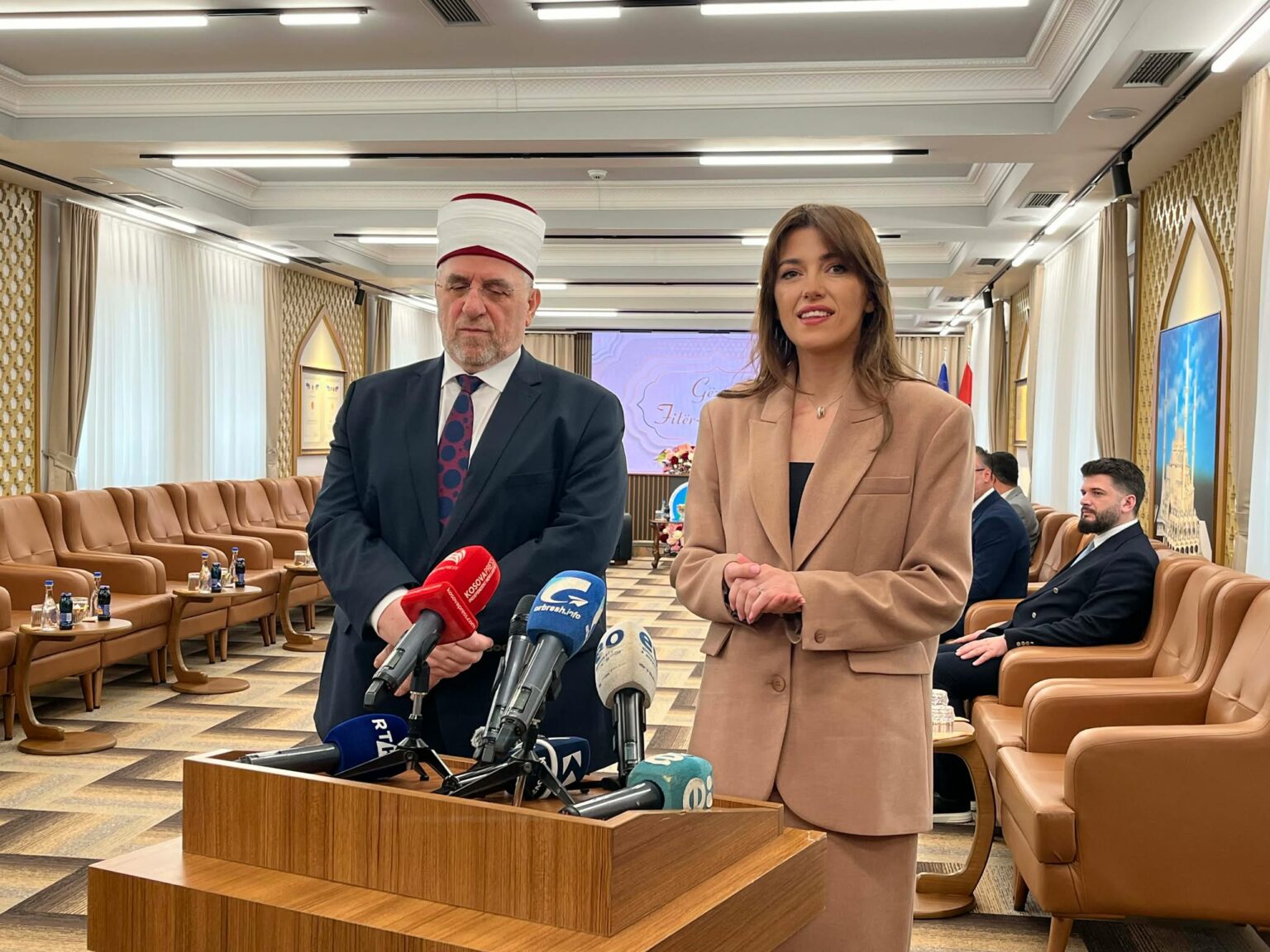 “Vizita jonë sot këtu në Bashkësinë Islame të Kosovës është edhe si shenjë respekti për punën, për kontributin që Bashkësia Islame e Kosovës ka bërë për shoqërinë tonë, për shtetin tonë, e sidomos në kultivimin e paqes, në bashkëjetesën ndërfetare, në mirëkuptim, që janë vlera shumë të rëndësishme për shoqërinë, por edhe për Republikën e Kosovës. Le të na shërbejë kjo festë e Fitër Bajramit si kujtesë se secili nga ne mund të japim shumëçka nga vetja, pikërisht që t’i lartësojmë këto vlera të shoqërisë sonë dhe pikërisht në këtë mënyrë e forcojmë besimin, por po ashtu edhe ndërtojmë një shoqëri më të drejtë dhe më të barabartë. Me fat Fitër Bajrami, paqe, shëndet dhe begati për secilën familje. Faleminderit! Më lejoni që edhe juve mediave t’ju uroj Fitër Bajramin”, tha Haxhiu.
