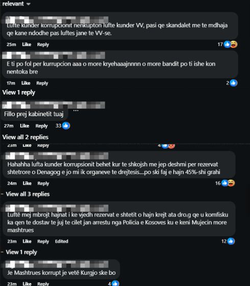 Në komentet e publikuara, një numër komentuesish akuzuan Vetëvendosjen se pas premtimit për luftë ndaj korrupsionit ka prodhuar skandale më të mëdha se qeveritë paraprake.