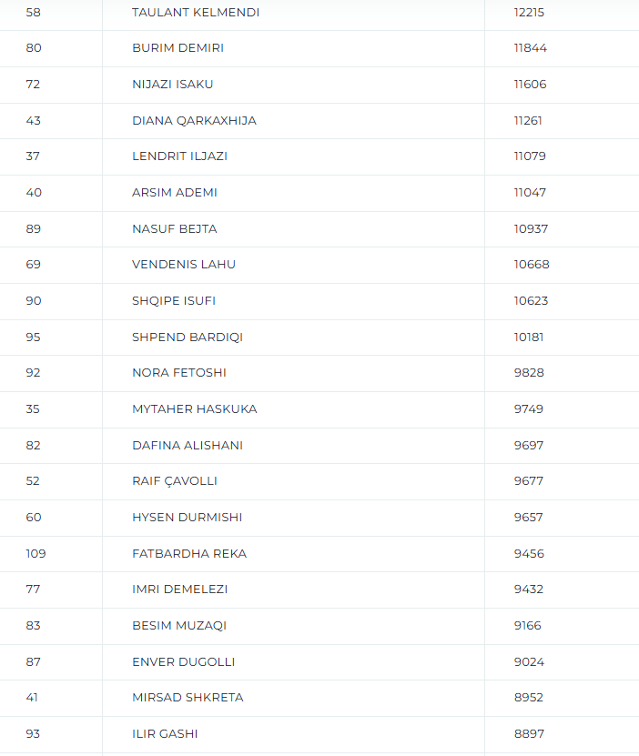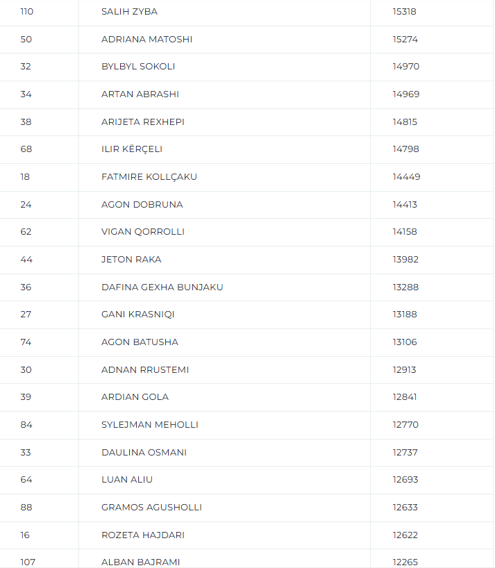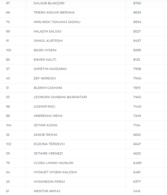 I pari i VV’së, Albin Kurti, ka marrë 266 mijë e 798 vota, më pas Glauk Konjufca 204 mijë e 599 vota.