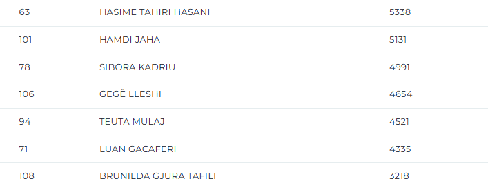 Në këto rezultate nuk përfshihen rezultatet e votave me kusht, votave të personave me nevoja të veçanta dhe votave nga votimi jashtë Kosovës, numërimi i të cilave do të bëhet gjatë ditëve në vazhdim në Qendrën e Numërimit dhe Rezultateve.