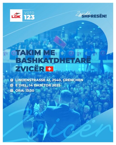 Kandidati për kryeministër nga Lidhja Demokratike e Kosovës, Lumir Abdixhiku, sot nga ora 13:30 do të takohet me bashkatdhetarët në Zvicër.