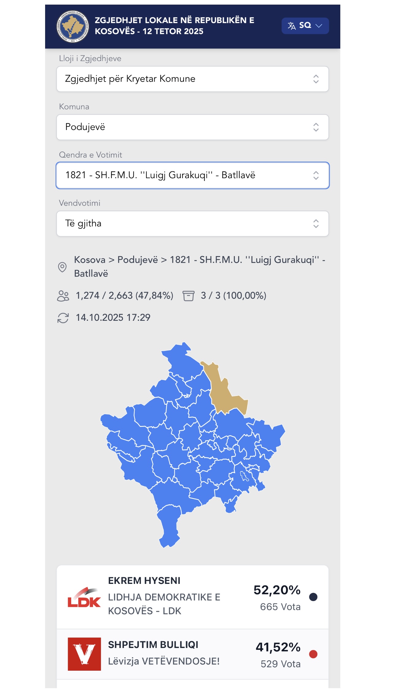 Kush fitoi në Batllavë, në fshatin e lindjes së Ekrem Hysenit të LDK-së