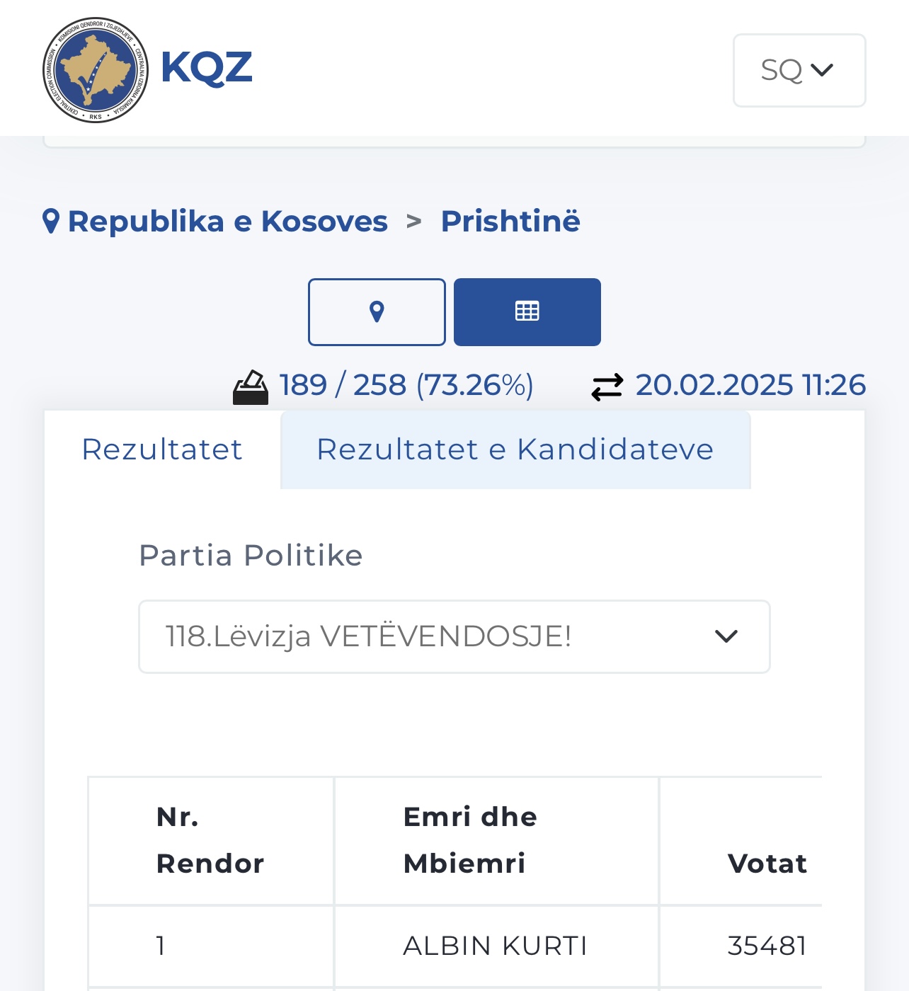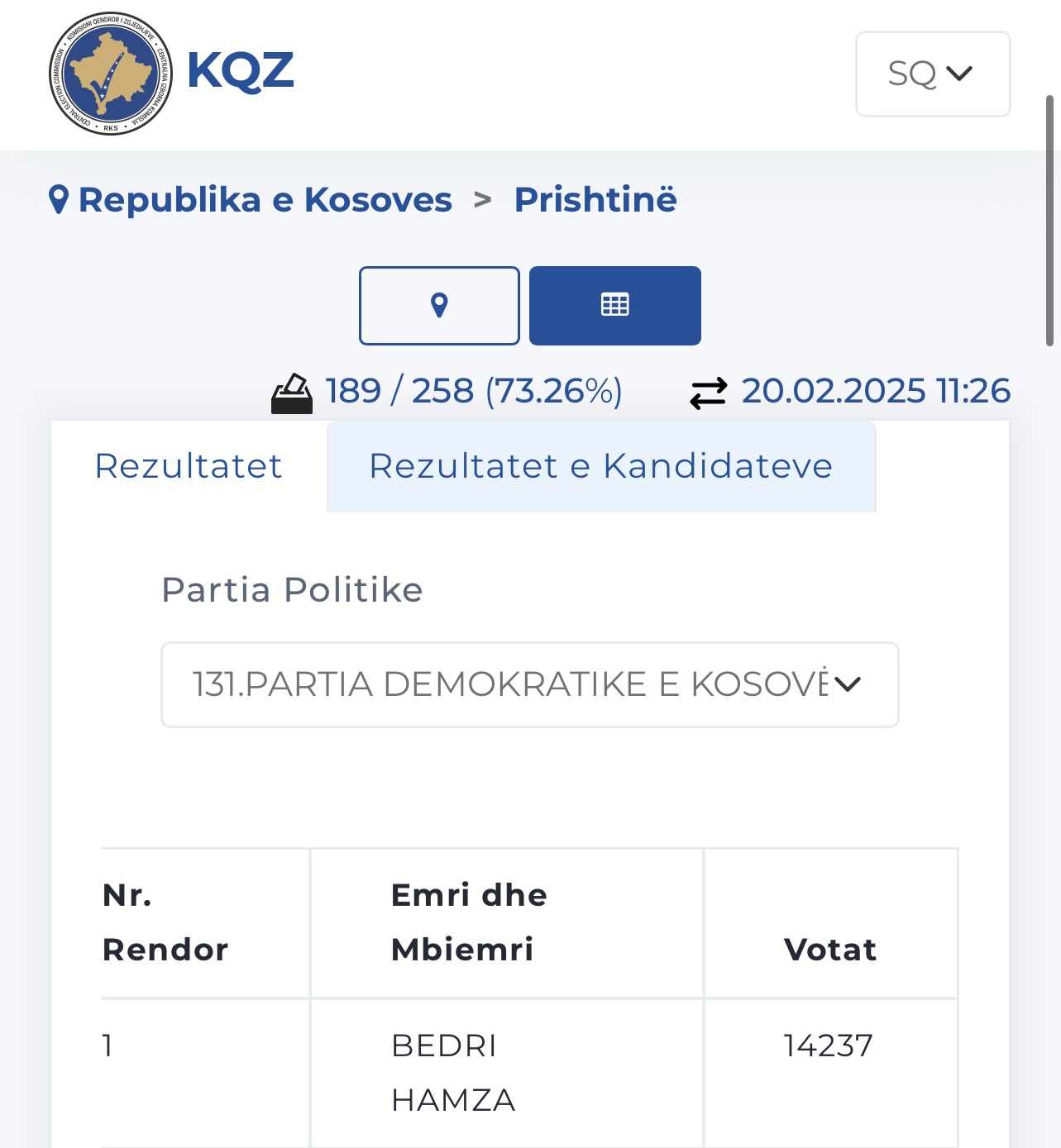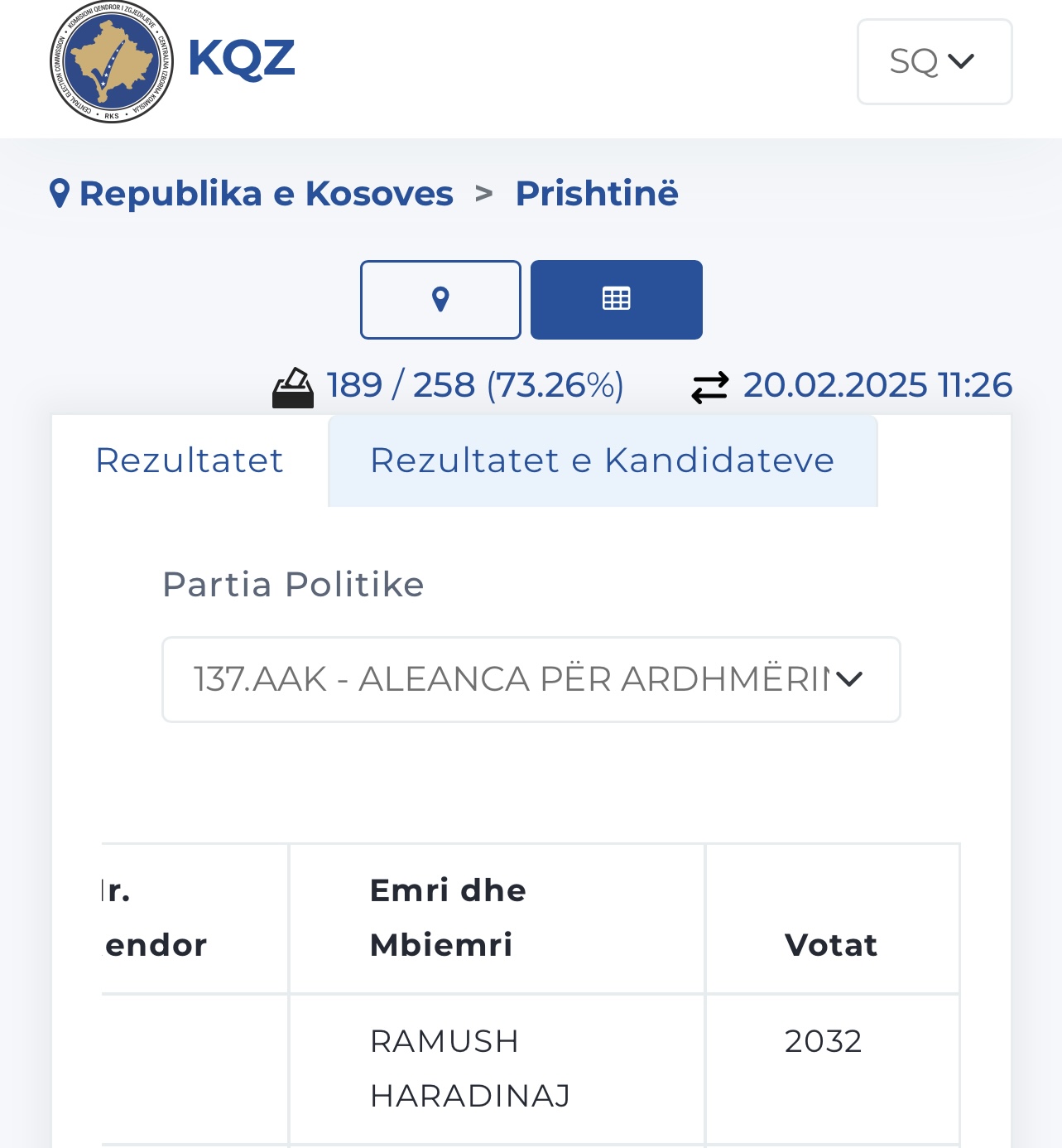 KQZ deri tani ka procesuar 73.26% të votave të kandidatëve për deputet nga subjektet politike.