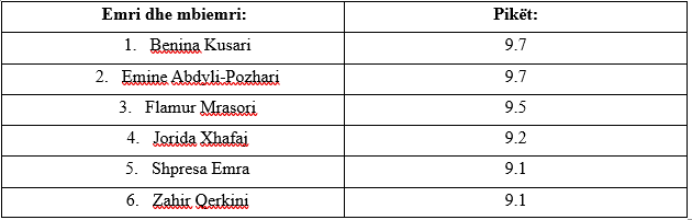 Pas përfundimit të intervistimit, Komisioni me rastin e poentimit vendosi t’i rekomandojë Kuvendit për votim listën prej gjashtë kandidatëve të suksesshëm si më poshtë.