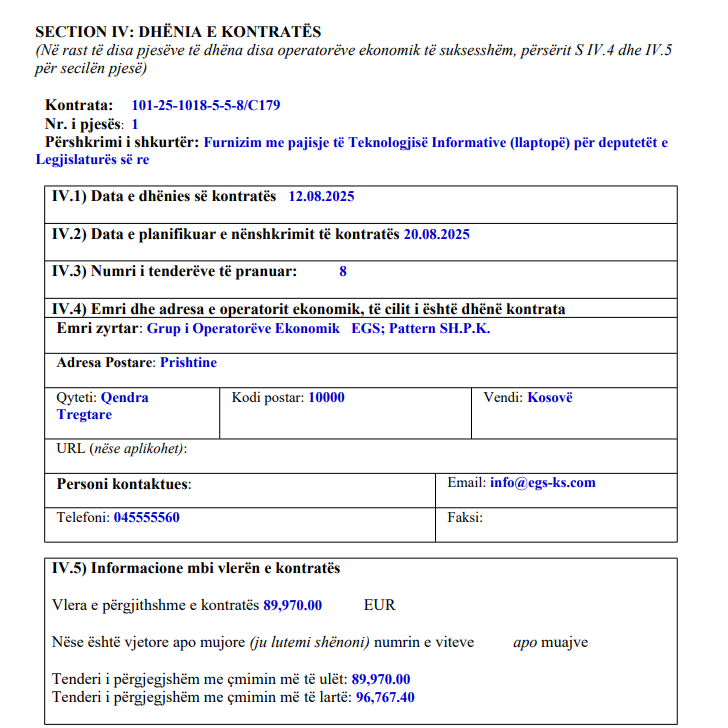 Me kontratë është shpërblyer grupi i operatorëve ekonomikë “EGS; Pattern SH.P.K”.