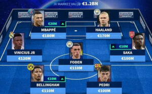 11 më të shtrenjtat udhëhiqen nga yjet e PSG dhe Manchester City, Kylian Mbappe dhe Erling Haaland, të cilët janë në krye të sulmit.