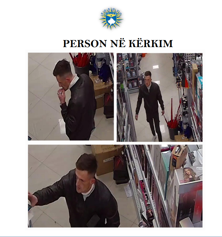 “Drejtoria Rajonale e Policisë në Gjakovë, përkatësisht Stacioni Policor në Malishevë – Sektori i Hetimeve, me autorizim nga Prokurori i Shtetit, dhe në kuadër të zhvillimit të procedurave hetimore, kërkon bashkëpunimin e qytetarëve për identifikimin dhe lokalizimin e një personi të dyshuar. Personi i dyshuar dyshohet se më datë 08.01.2026, në një qendër tregtare në Malishevë, ka kryer veprën penale “Vjedhje”, dhe pavarësisht angazhimeve dhe veprimeve të ndërmarra deri më tani, identiteti i tij ende nuk është zbuluar”, thotë Policia.