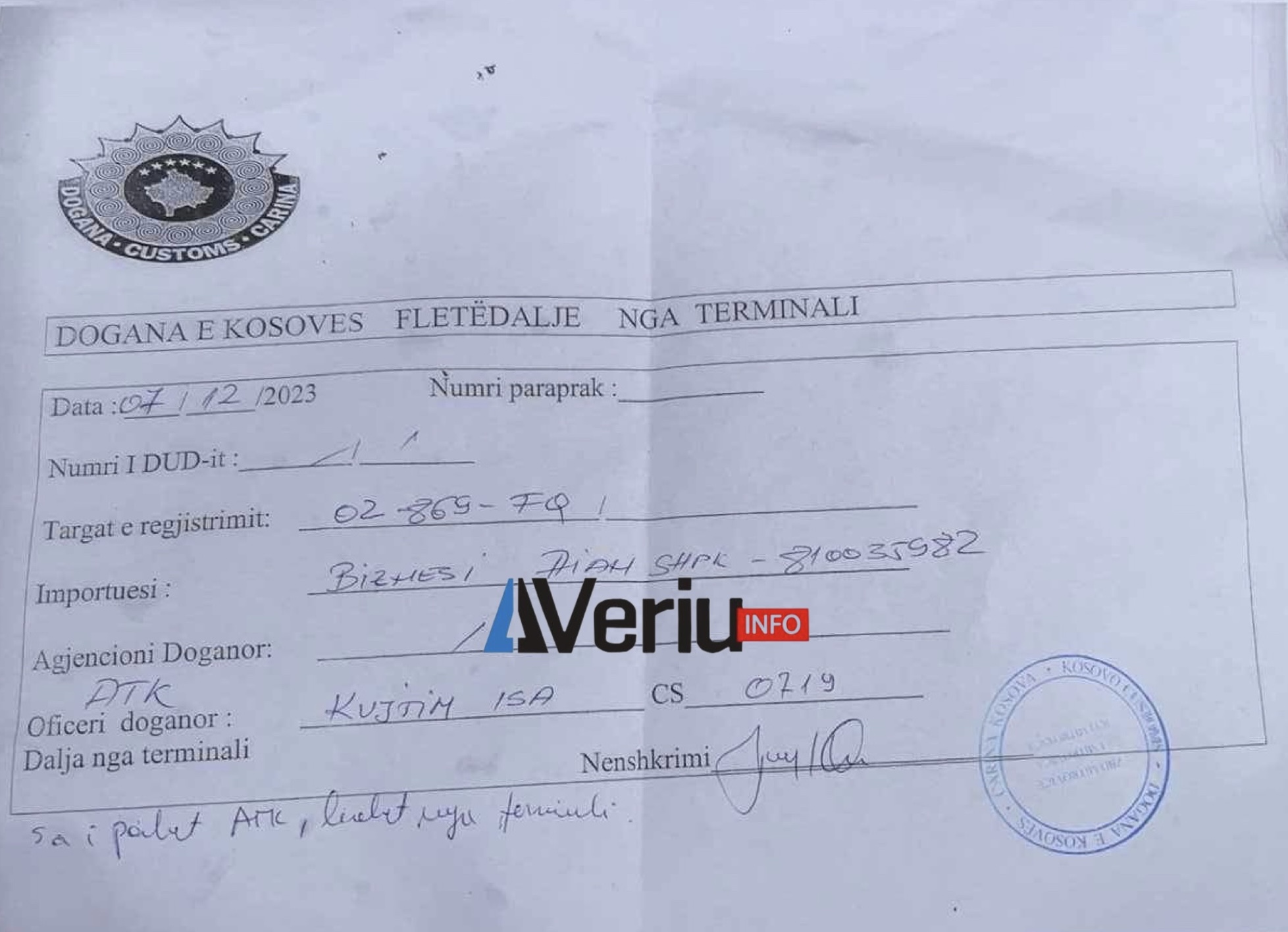 Veriu.info ka siguruar edhe fletlëshimin e doganës: