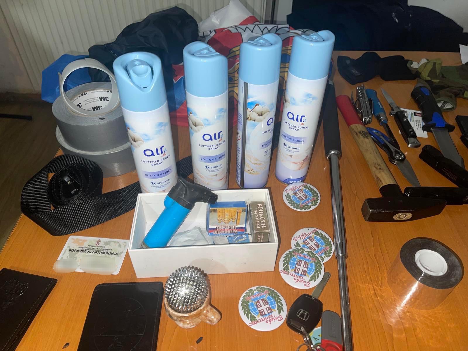 Personat janë ndaluar nga Policia e Kosovës teksa po lëviznin me një veturë me targa të Sllovenisë dhe gjatë kontrollit u janë gjetur pajisje të kundërligjshme, përfshirë maska kamuflazhi, emblema me simbole nacionaliste, dokumentacione.