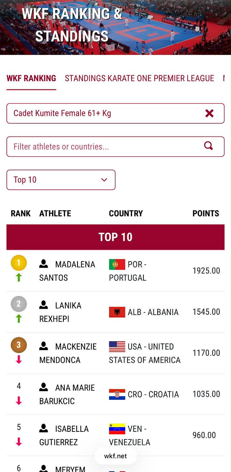 Lanika, e cila garon dhe përfaqëson Shqipërinë, është sot pjesë e elitës botërore të karatesë për kadete, falë rezultateve të saj të vazhdueshme në garat zyrtare ndërkombëtare. Ky renditje vjen si rezultat i pikëve të grumbulluara në kampionate dhe turne të organizuara nga Federata Botërore e Karatesë, e cila publikon renditjen zyrtare globale.