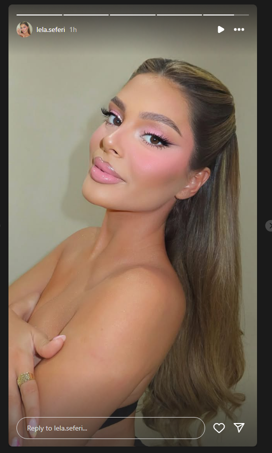 Në Instastory ndau një fotografi ku tregon grimin që e ka vendosur në fytyrë.